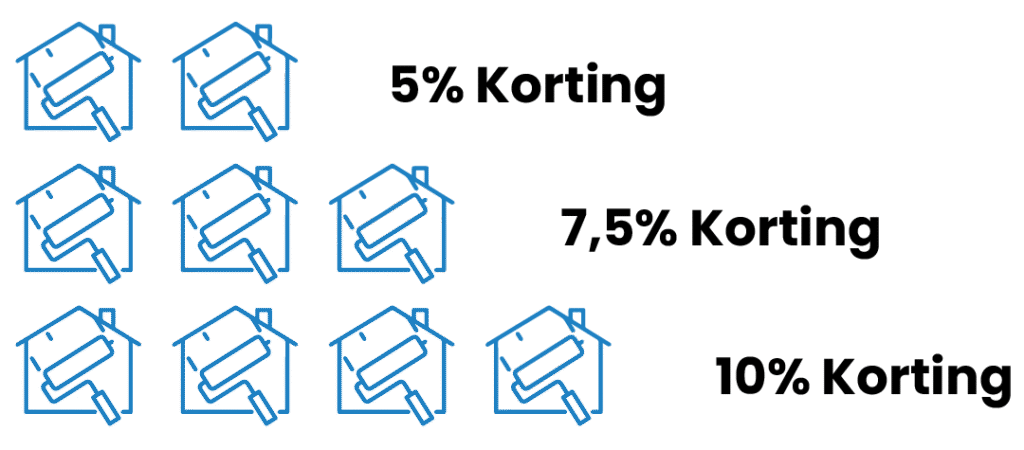 Wilt u uw woning laten schilderen? Doe dit samen met uw buren en ontvang een mooie gezamenlijke korting. Hoe meer buren in dezelfde straat meedoen, hoe hoger de korting voor iedereen.